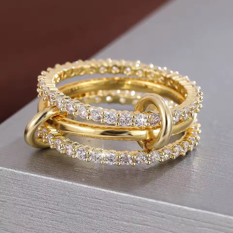 14K Gold Plated Set Triple Band Statement Ring for Women